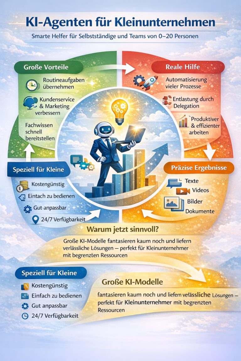 Künstliche Intelligenz revolutioniert Geschäftsprozesse, Marketing und Produktion. Ob Automatisierung, Social Media oder Handwerk – praxisnahe KI-Anwendungen sparen Zeit und steigern die Effizienz. Lernen Sie, KI gezielt einzusetzen, um innovative Lösungen zu entwickeln und Wettbewerbsvorteile zu sichern. Nutzen Sie moderne Technologien, um Ihre Abläufe zu optimieren und neue Geschäftsfelder zu erschließen. Lassen Sie sich zeigen, wie KI Ihr Unternehmen transformieren kann – praxisnah, verständlich und individuell angepasst! Weitere Informationen bieten wir Ihnen gerne an in einem extra Gespräch am s. Formular weiter unten.